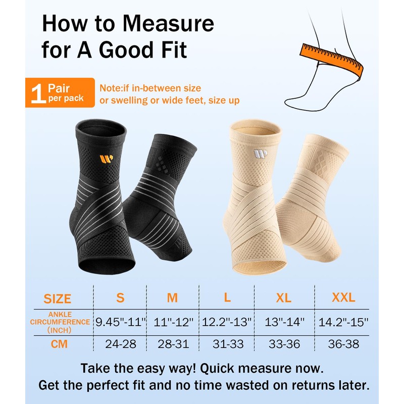- High Elastic Comfort 3D Fabric : Crafted from lightweight 3D soft fabric, this ankle support brace is highly elastic for a snug, flexible fit. With top-notch moisture-wicking tech, this ankle compression sleeves keep your ankle cool and dry. Perfect for workouts or daily use.