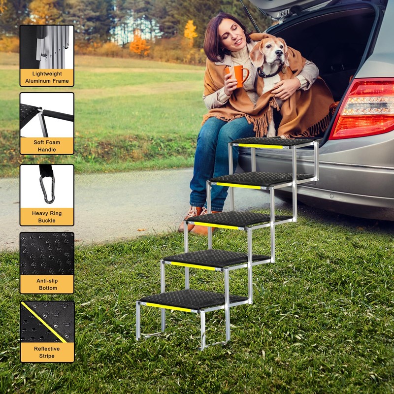 WHDPETS Dog Car Ramp for Large Dogs, Portable Aluminum Foldable Pet Ramp with Non-Slip Surface, Lightweight Dog Stairs for Cars SUV, High Beds and Trucks, Supports up to 200 lbs, 5 Steps
