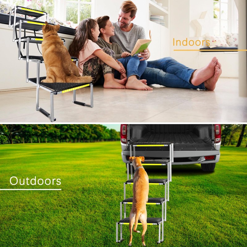 - 【Easy to Use】 Our dog ladder is suitable for your dog to get in and out of SUVs, trucks, cars, sedans, minivans, beds, couches, grooming or vet tables, and any place suitable for the height of it. Flexible folding and stretching structure for easy use, carry and store. If you have any questions of the dog steps, please feel free to contact us.