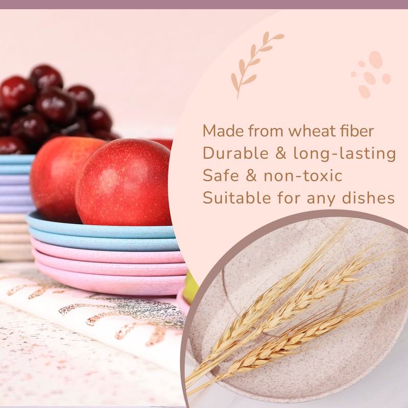 - MICROWAVEABLE DISHES FOR CONVENIENT REHEATING: Convenience meets sustainability with our microwaveable plates, ensuring you can quickly heat up your favorite treats without compromising on safety. All our wheat straw tableware made of eco-friendly wheat fiber