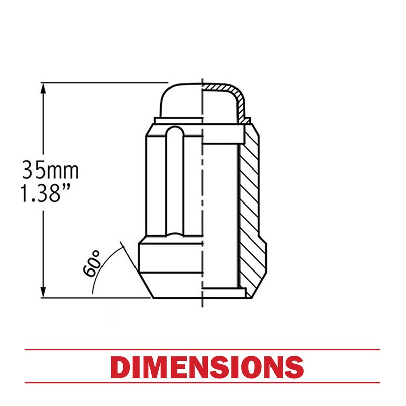 - 1.38" Long 2 Piece Design lug nut The 2-piece design refers to a thin metal cap on the Lug Nut that protects against false torque readings resulting from the wheel stud contacting the inside of lug nut prior to seating with the wheel.
