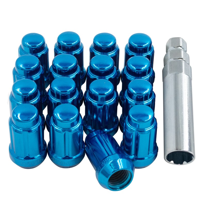 Wheel Accessories Parts Set of ATV/UTV 16 Blue 12x1.5 Lug Nuts 1.38" Long for Car Small Diameter Bulge Acorn Spline Lug Nuts Cone Seat Locking with Key (M12 x 1.5, Blue