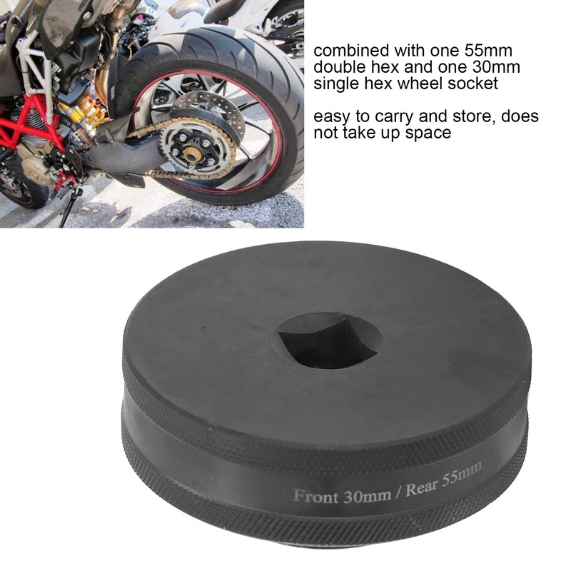 - PRACTICAL - The 55mm socket is applied to rear wheel nut, and the 30mm socket is used for the front axle nut. The tool is a necessary for motorcycle repairment.