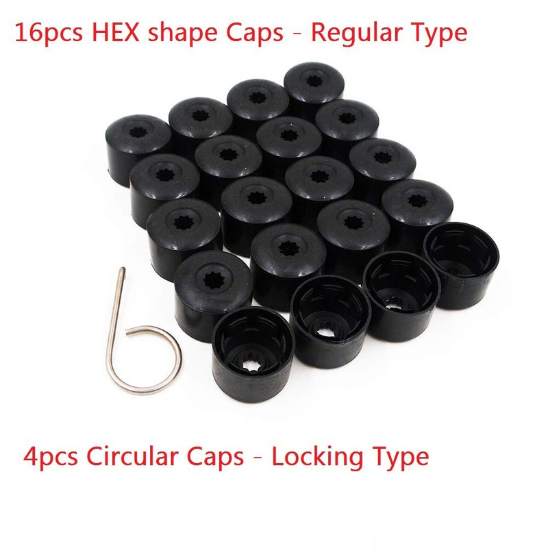 Wheel Lug Nut Bolt Cover Caps Replacement for Jetta MK4 MK5 MK6 Passat B5 B6 B7 Golf plus Set of 20 Free Dismantle Tool, 1K0 601 173,
