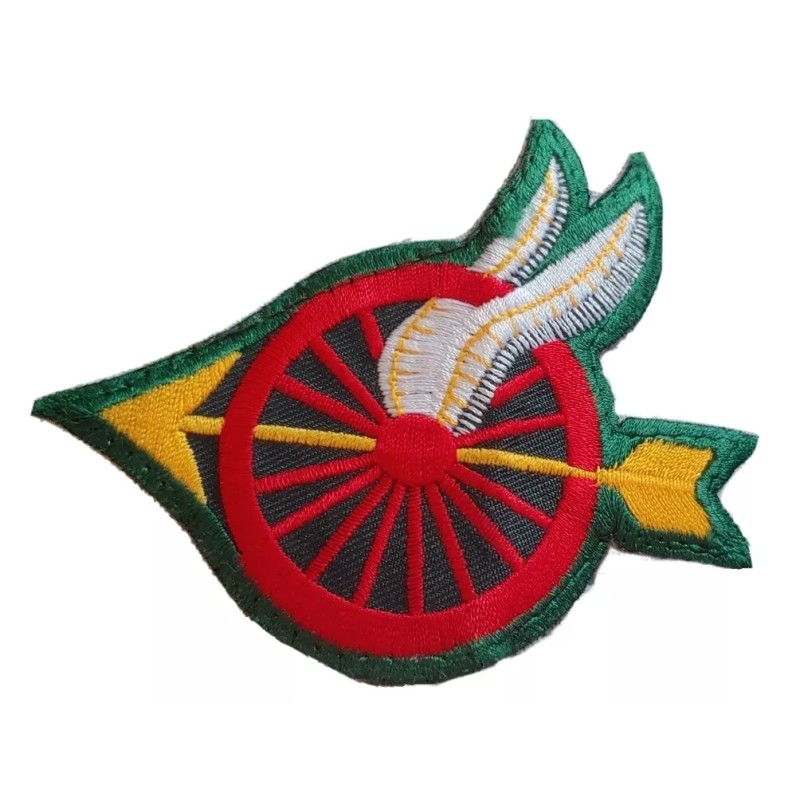 WHEEL WITH WINGS & ARROW EMBROIDERED PATCH 4 1/8 "X 3" Green trim. Condition is New. Shipped with USPS First Class Package.