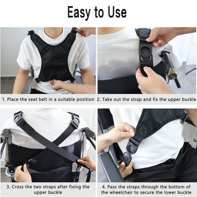 - Adjustable: The wheelchair harness features a universal round buckle that is easy to install and adjust; it can be adjusted to suit your needs, and all webbing is equipped with adjustable buckles for added flexibility and durability