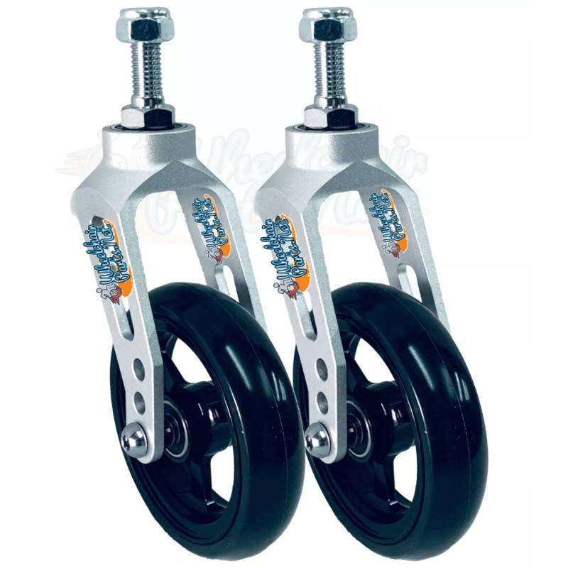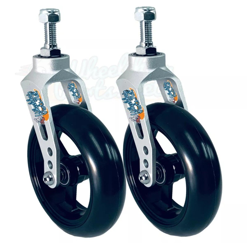 Wheelchairparts.Net ALUMINUM CASTER FORK (SILVER) ASSEMBLY WITH WHEELS. CHOOSE YOUR WHEEL SIZE - Silver Fork With 4x1.4 Silver Wheel