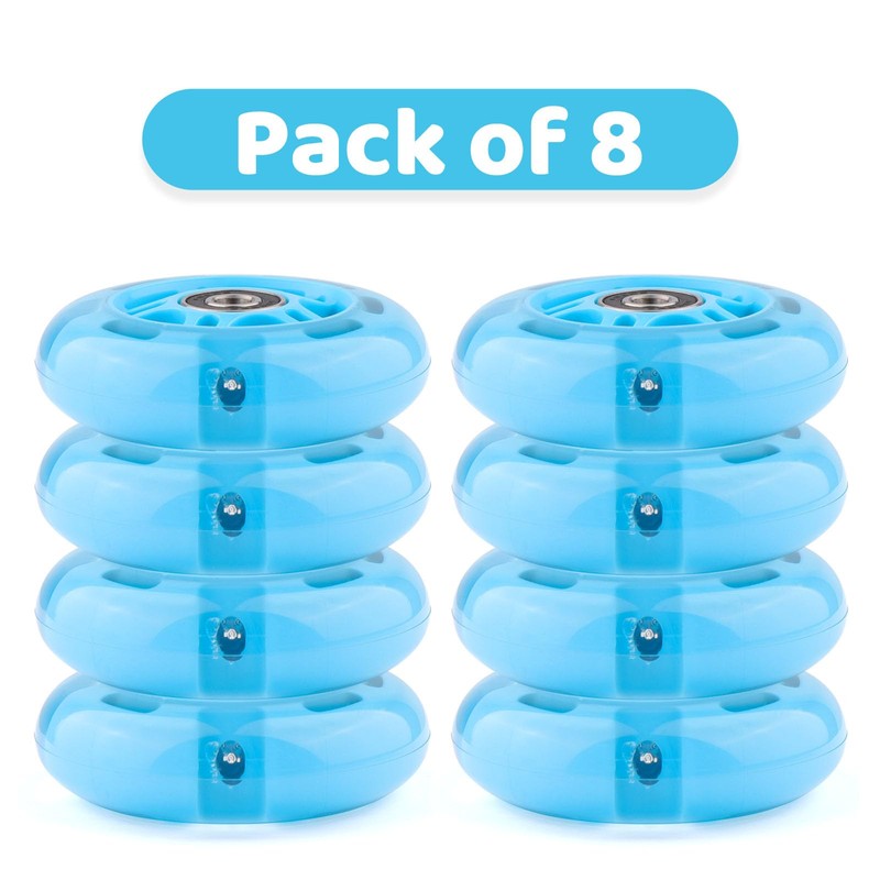 Wheelgoo 8pcs Inline Skate Wheels Led Light-Up Wheels 64/70/72/76/80mm w/Bushings 85-88A for Kids and Youth Beginners Children's Inline Skates Indoor/Outdoor Use (Blue, 80mm)