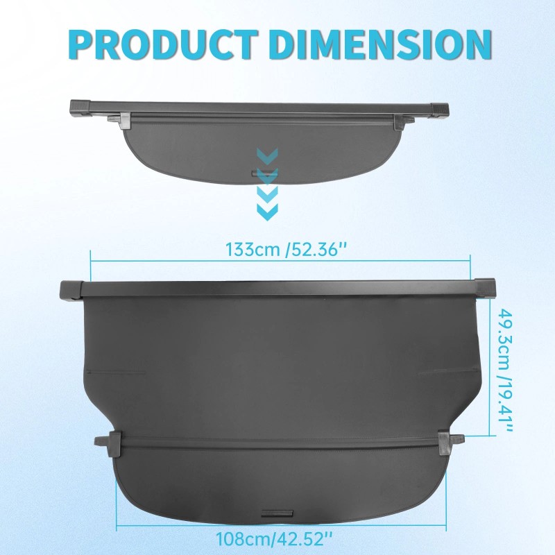 【Retractable and Flexible】Retractable and adjustable. The retractable flexibility of this cargo cover makes it easy to use, simply pull it out to cover the contents of your trunk and easy retract it when you're done. Easy to install and remove, no drilling required to avoid damage to your car.