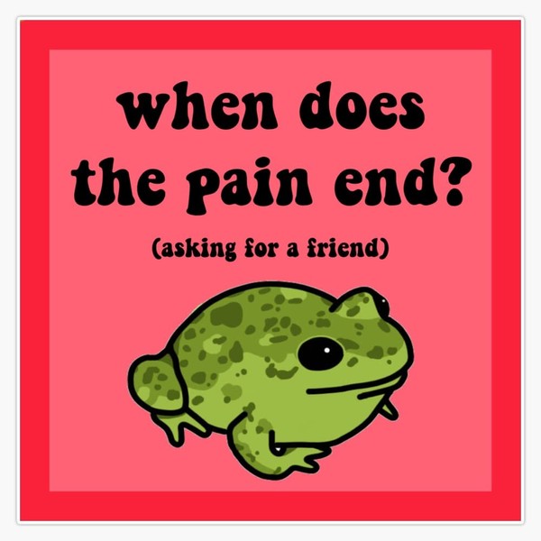 When Does The Pain End? Frog Bumper Sticker Vinyl Decal 5 inches
