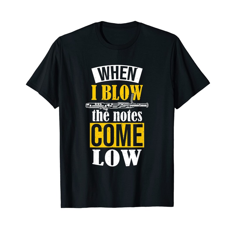 • Funny bassoon saying that reads "When I Blow The Notes Come Low". Just right for a proud bassoon player looking for a cool woodwind instrument outfit to stand out when playing the concert bassoon.