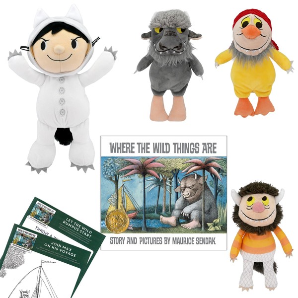 Where The Wild Things are Gift Set with Hardcover by Maurice Sendak, 14” Max Plush Doll, 9” Moishe Monster Stuffed Animal, 9 Inch Bernard Monster Plush, 9” Tzippy Monster Plushie, and Activity Pages