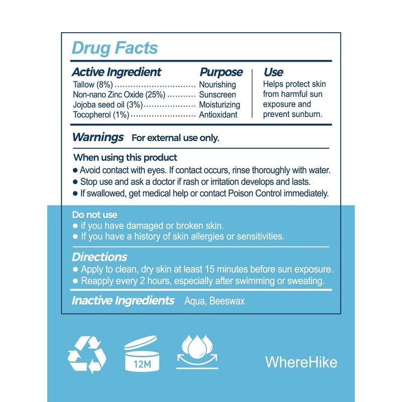 WhereHike WhereHike Organic Beef Tallow Sunscreen-SPF 50 with Zinc Oxide,Non-Toxic 2-in-1 Moisturizer & Mineral Sunblock | Reef Safe, Chemical-Free,Lightweight, Clean Formula for Sensitive Skin.
