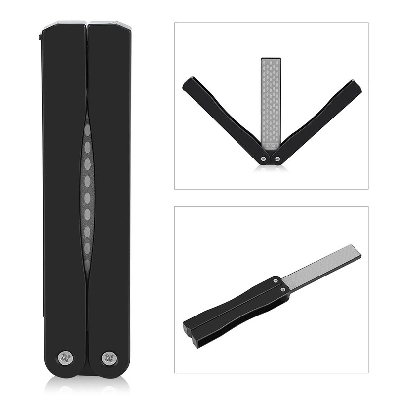 Whetstone Sharpener Stone Folding Double-Sided Stone Portable Fine Coarse Grinding Outdoor Camping Tool 400/600# (Black)