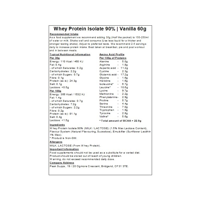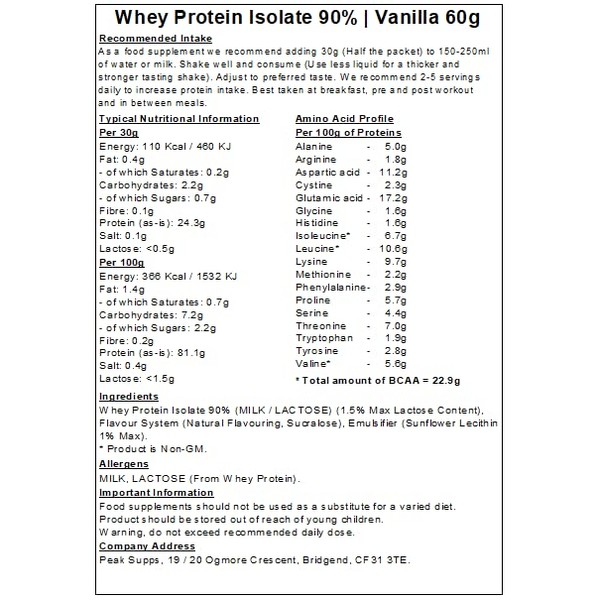 Whey Protein Isolate 90% - All Flavours (Vanilla, 60g (2 Servings))