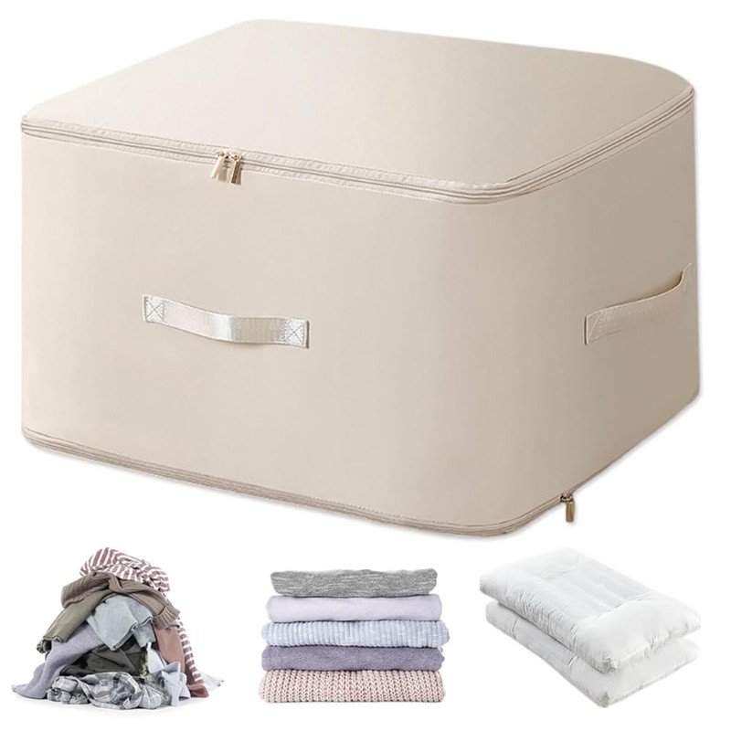 WHFDC Ultra Space Saving Self Compression Organizer Quilt Compression Storage Bags Space Saving Compression Bags for Comforters Clothes Blankets 54×42×60CM Beige
