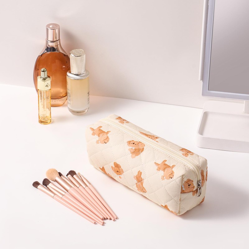 - 💝PREMIUM AND SOFT COTTON: This quilted pouch made from premium thick cotton material with PP cotton inside, this makeup brush bag is durable, lightweight, soft to the touch, easy to clean. Neat stitches and smooth zipper are not easily deformed, ensuring long-lasting use (Machine washable).