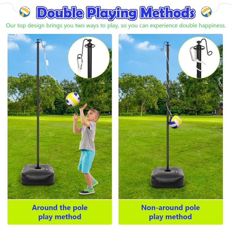 - Two Play Methods: Our tetherball ball and rope has upgraded the play methods. You choose to play around the pole and not around the pole, which can add more fun to the game.