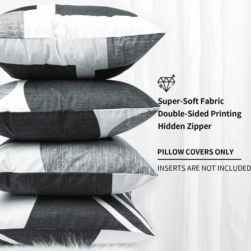 Whim-Wham Set of 4 Black and White Throw Pillows for Couch Black Gray White Silver Boho Decorative Pillow Covers Abstract Geometric Modern Pillowcases 20x20 inches for Bed Bedroom.