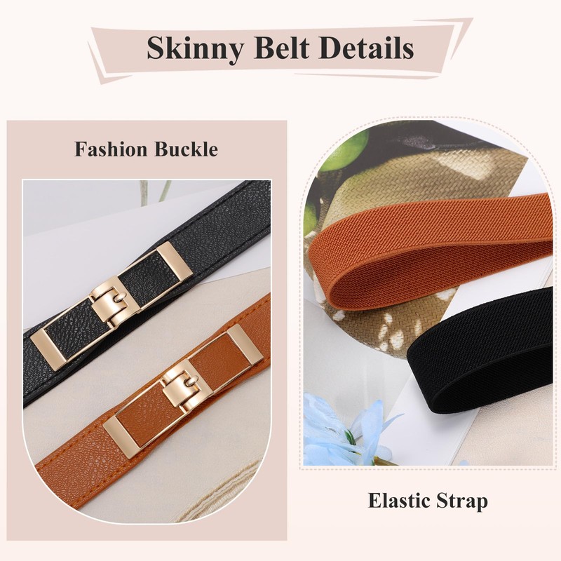 - Fashion Ladies Thin Belt: Available in these trendy colors—black, brown, beige, white, and red—these skinny stretch belts can easily complement any outfit. You can mix and match these thin waist belts to suit your own style.