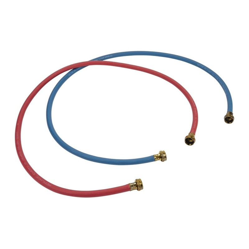 These hoses have Brass Anti-Corrosive Couplings, Pre-Installed High Quality EPDM Washers, a Large Diameter for Maximum Water Flow, and an 1100 PSI Burst Strength. Hoses exceed IAPMO, CSA, ANSI, IEC 61770, and RMA standards, and are designed for use with both hot and cold water inlet. Hoses are better than stainless steel and will not conduct electricity. Includes (2) 5-foot hoses. Replace inlet hoses after 5 years of use to reduce the risk of hose failure.
