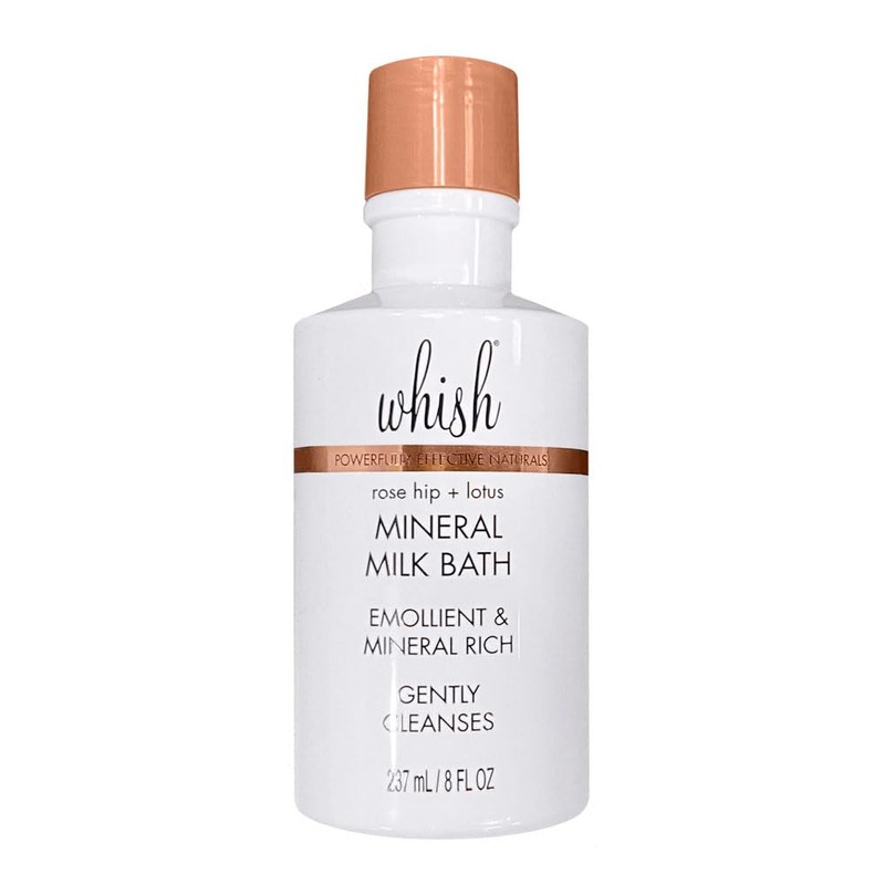- A Nourishing Milk Wash: Relax and unwind after a long day with Whish' Rose Hip & Lotus Mineral Milk Bath. Infused with mineral-rich blend of hydrolyzed milk protein, almond oil, shea butter, and rose hip oil, this womens body wash moisturizes and cleanses your skin for smooth, supple results.