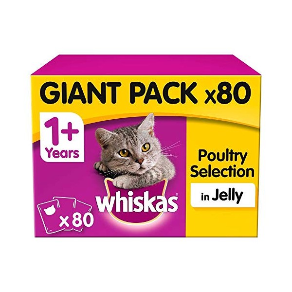 Product Descriptionwhiskas 1+ Cat Pouches Poultry Selection in Jelly 80x100g, whiskas 1+ Cat Pouches Poultry Selection in Jelly 80x100g, whiskas 1+ Cat Pouches Poultry Selection in Jelly 80x100gIndicationsAll Life Stages, All Breed Sizes, Skin & CoatDirectionsStore in a cool dry placeBox Contains1 X whiskas 1+ Cat Pouches Poultry Selection in Jelly 80x100g, whiskas 1+ Cat Pouches Poultry Selection in Jelly 80x100g, whiskas 1+ Cat Pouches Poultry Selection in Jelly 80x100g