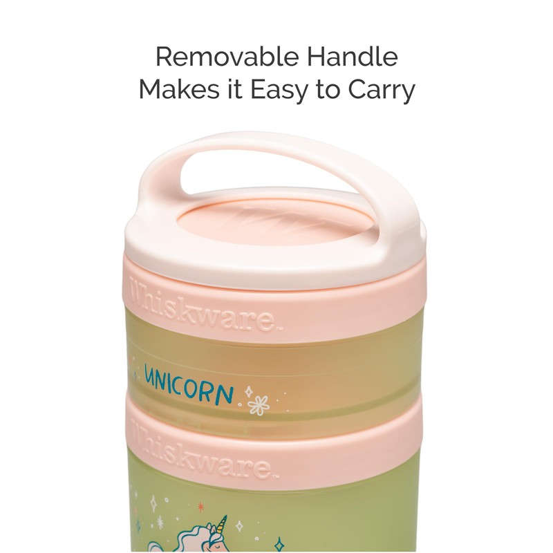 Whiskware - Recipientes apilables para aperitivos para niños y niños, 3 tazas apilables para aperitivos para la escuela o viajes, unicornio