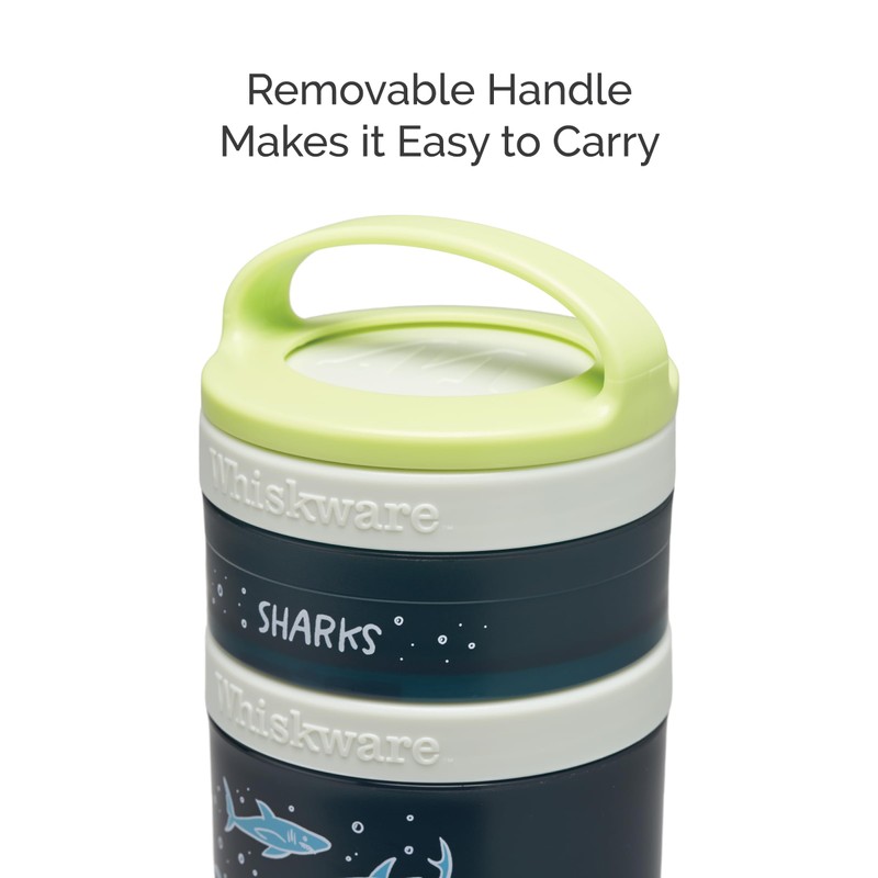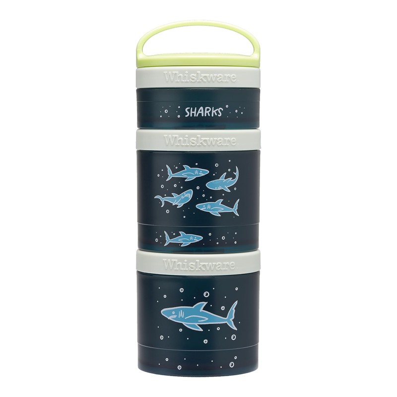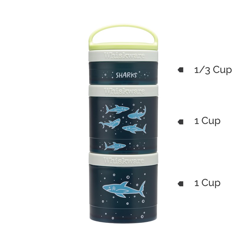 Whiskware Stackable Snack Containers for Kids and Toddlers, 3 Stackable Snack Cups for School or Travel, Sharks