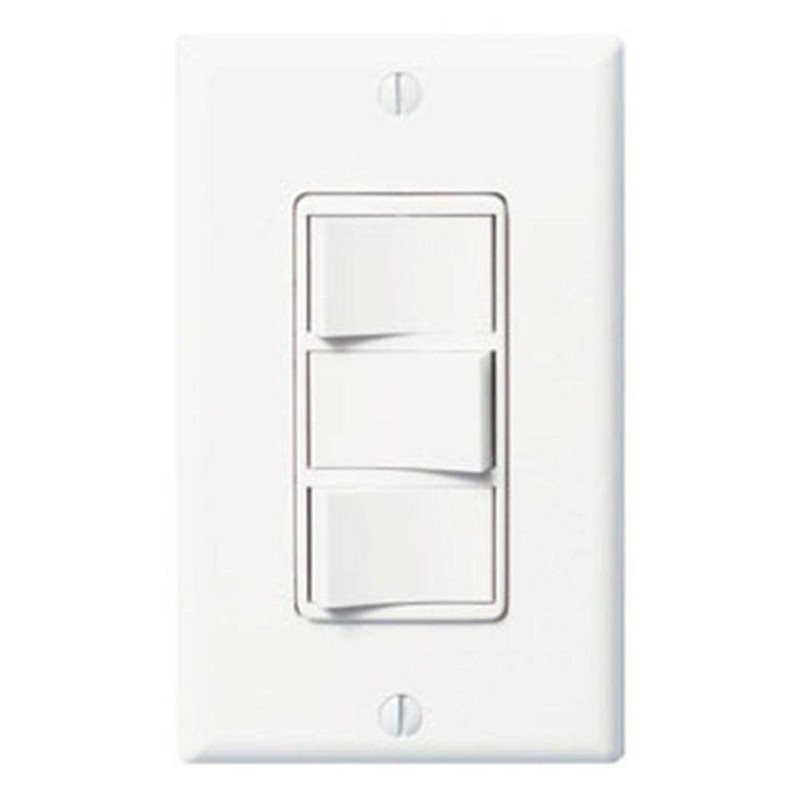 Panasonic FV-WCSW31 WhisperControl 3 Function On/Off Switch, Ideal for Fan/Light/Night-light Panasonic WhisperControl Switches Provide Quality and Performance to Meet Residential and Commercial Application Needs. Available in Single, Double, Triple, Quad Functions and Preset Count Down Timer to Provide a Complete Whisper Package for all of Our Ventilation Fans. Features & Benefits Multi-switch Combination Devices Save Space and Add Convenience Common Feed Shunted Internally to All Switches Elegant Decorator Styling Provides Multiple Controls in a Single-gang Wall Box Includes Matching Wall Plate Commercial Grade Specifications Ground: Grounding Feature: Single Pole / Single Pole / Single Pole Amperage: 15 Amp Voltage: 120 Volt Termination: Quickwire Push-In, Back & Side Wire Standards & Certifications: UL/CSA Listed Warranty: 2 Year Limited.