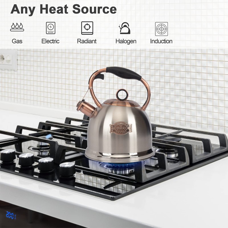 - 🍵Stainless Steel Design:Whole teakettle body are made of stainless steel, The thick body making it more durable and sturdy. 5-layer metal bottom with high thermal conductivity for more uniform heating and longer service life.