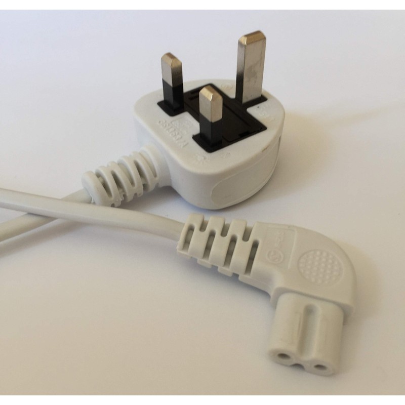 White 10m Mains Power Cable/Lead by electrosmart® ~ 3 Pin Moulded UK Plug to Right Angled IEC C7 Figure 8