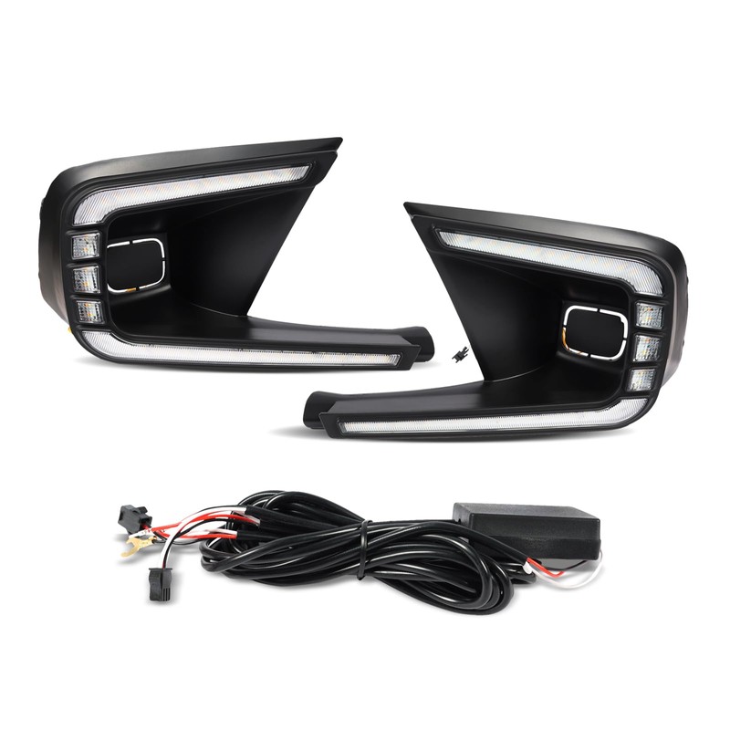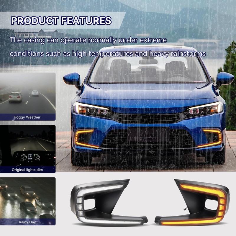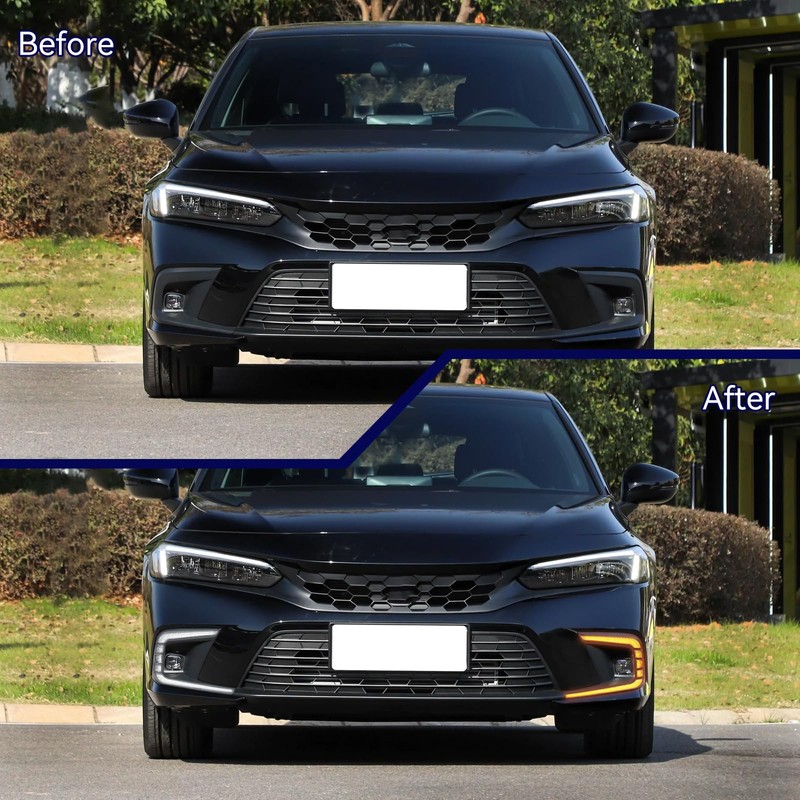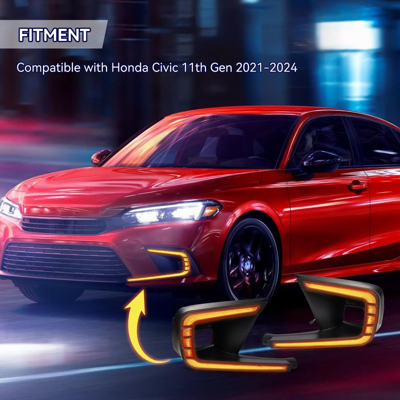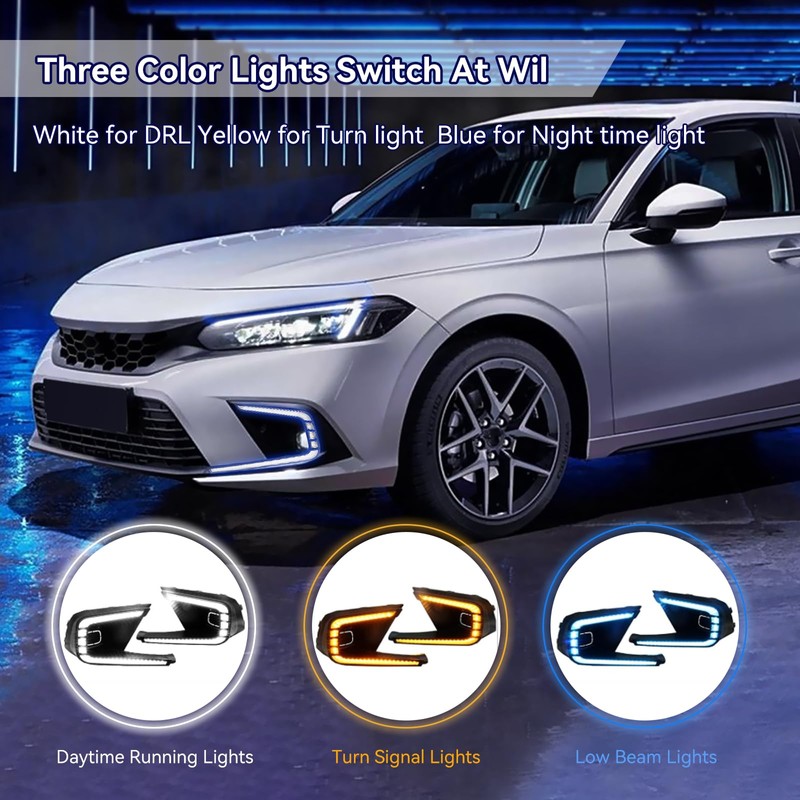 White/Amber LED Front Fog DRL & Dynamic Sequential Turn Signal with Blue Fog Lights for 2021-2024 Honda Civic 11th Gen