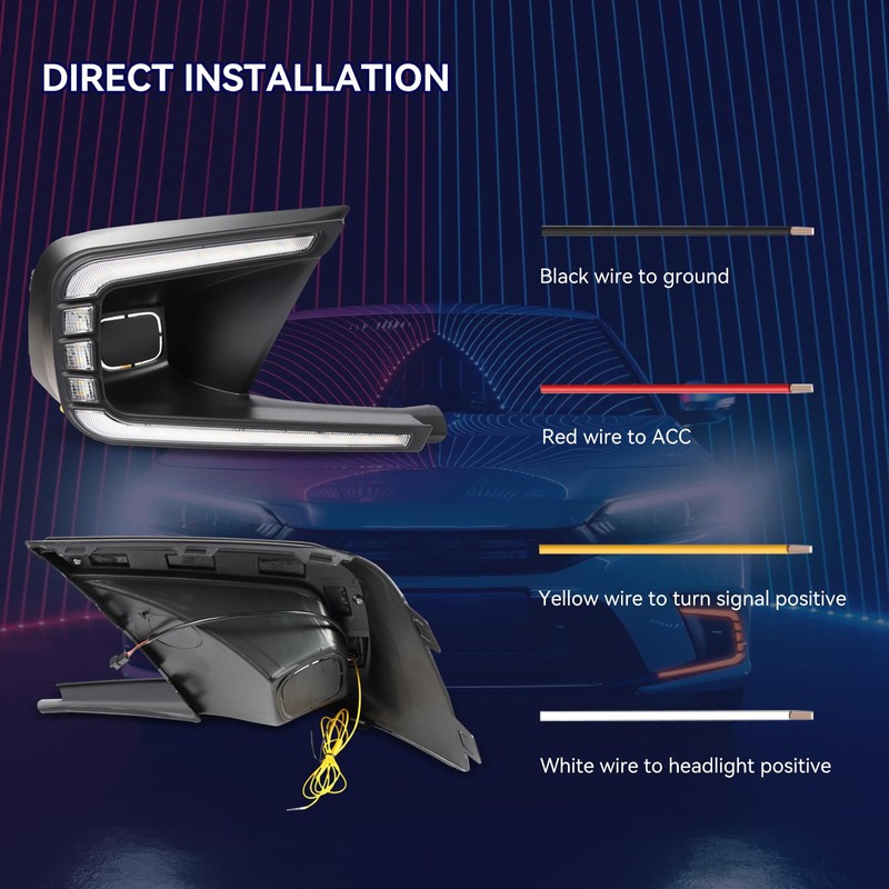 - Easy installation: Provides plug-and-play installation without any additional modification. The wiring is simple, the black wire is connected to the negative pole, the red wire is connected to the ACC, the white wire is connected to the headlight, and the yellow wire is connected to the turn signal. It is recommended to be installed by professionals to ensure optimal performance
