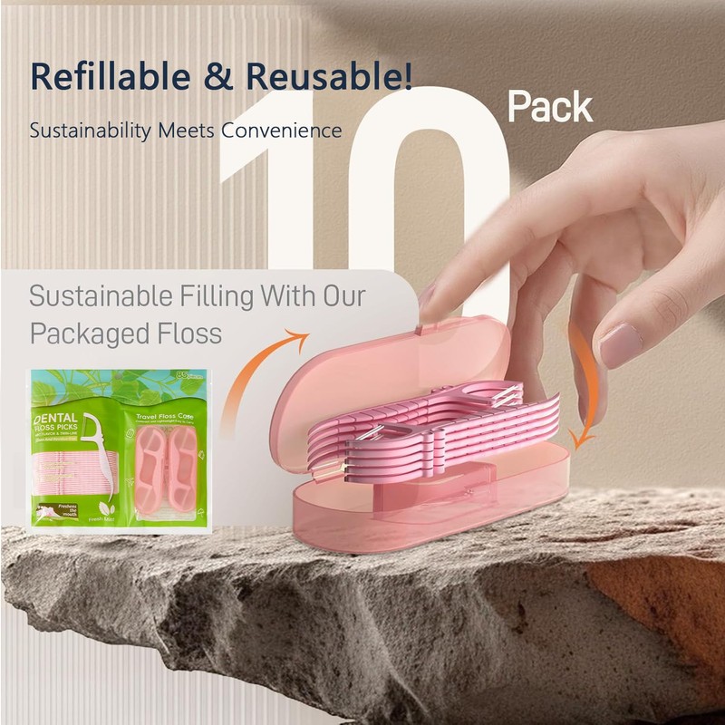 • Travel-Friendly Convenience: Our small flossers case holds 10 dental picks, making it the perfect travel companion. Lightweight and compact, this flossing kit easily fits in your purse, car, or bathroom, so you can maintain your oral care routine anywhere you go