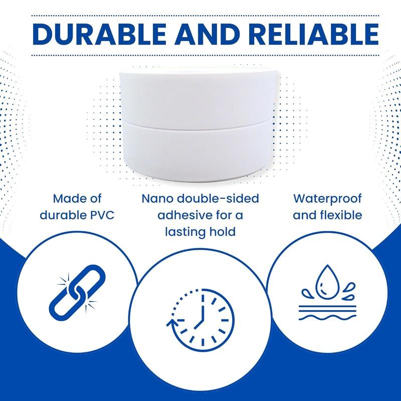 Sealing and durable: Made from high-quality PVC material, this caulk tape is durable and long-lasting. The self-adhesive bathroom caulking tape features a new nano double-sided adhesive, providing a long-lasting seal and strong adhesion. It covers cracks, crevices, and damaged corners perfectly.