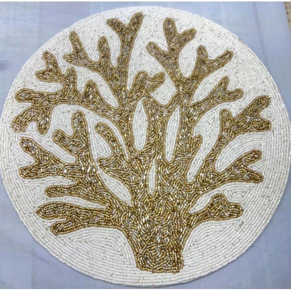 White Beaded Placemat White Gold Coral Seashell Charger New Luxe Collection 15" New