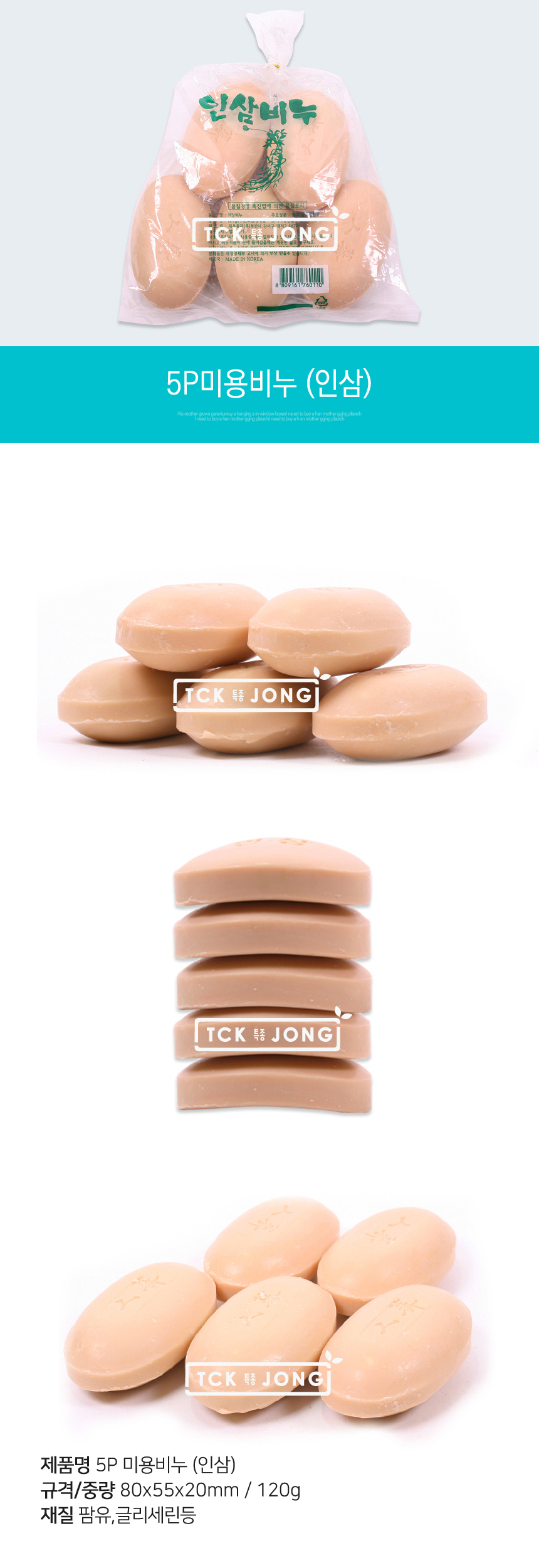 White Beauty Soap 5-Pack Ginseng 2ea