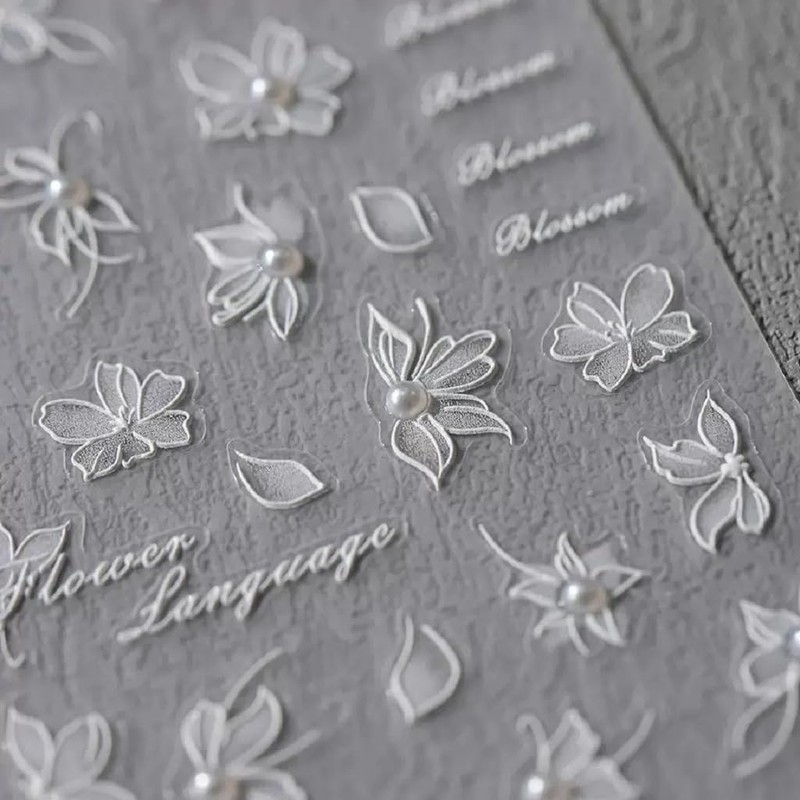 White Butterfly Nail Art Stickers 5D Embossed Nail Decals Flower Nail Stickers with Pearl Designs Self-Adhesive Nail Art Decals Nail Supply Decoratons for Women (1 Sheet)
