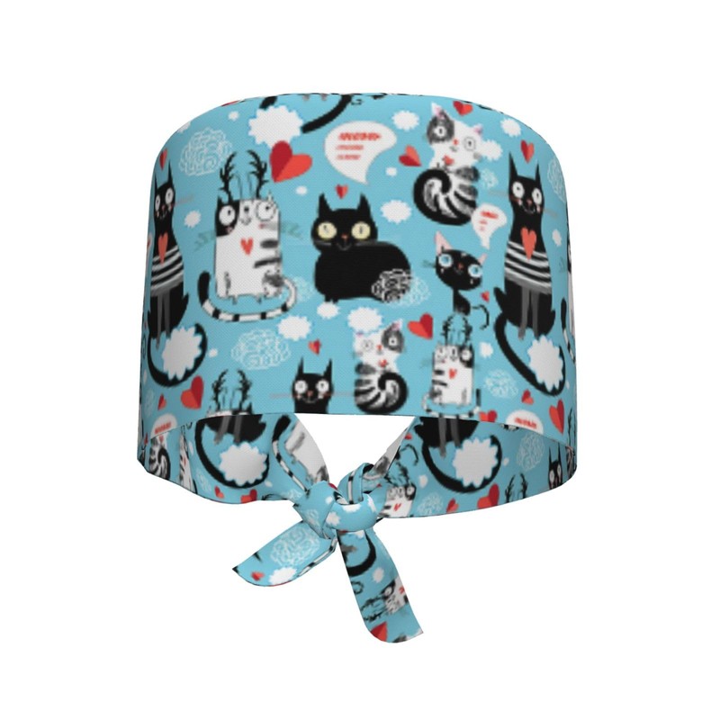 White Cats in Love Blue Cute Beautiful Adjustable Working Cap Breathable Unisex Women Men Elastic Bandage Tie Back Hats Scrub Nursing Doctor Surgeon Cap