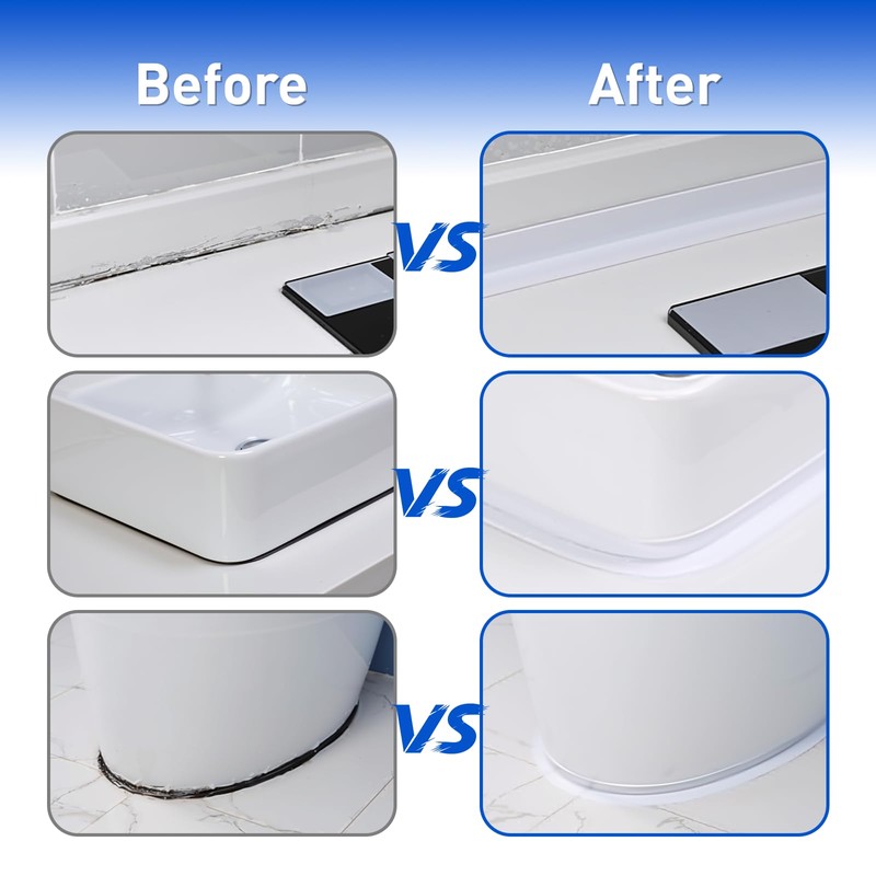 - 【Wide Applications】Self-adhesive caulking tape sealant tape is widely used for sealing joints in toilets, bathroom, kitchen, sinks, pools, bathtubs, washbasin, gas stoves and walls. The shower seal strip can prevent them from blackening and keep your kitchen and bathroom clean and tidy.