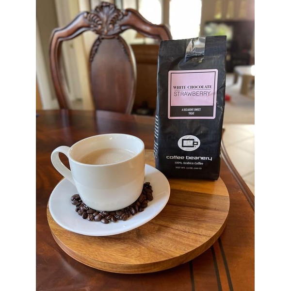 White Chocolate Strawberry Flavored Coffee, Specialty Arabica Coffee, Medium Roast, 12 ounce, Automatic Drip (Ground)