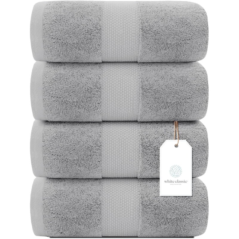 White Classic Luxury Bath Towels Set of 4 Large - 700 GSM Cotton Ultra Soft Bath Towels 27x54 | Highly Absorbent and Quick Dry | Hotel Towels for Bathroom Luxury, Plush Shower Towels, Dolphin Gray