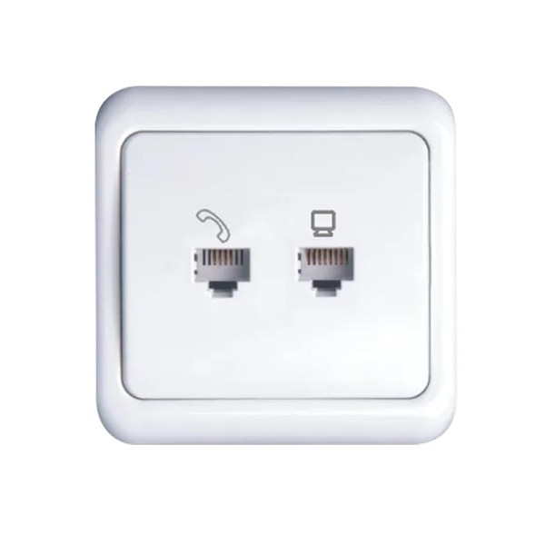 White Combination Switch Network + Telephone Connection Flush Mount