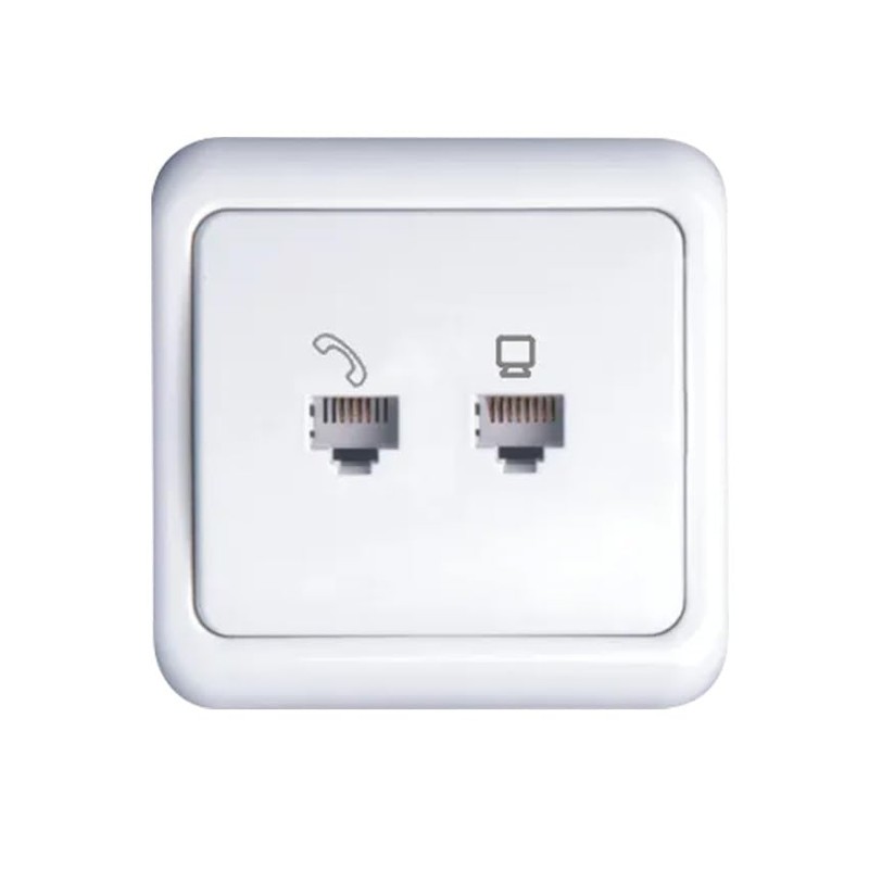 - The German combination switch provides an integrated solution for connectivity at home or in the office. This unit combines a mains socket and a telephone connection into a single compact panel for a clean and efficient installation. Designed according to German standards, it is ideal for those looking for an orderly and aesthetic solution for managing network and telephone connections.