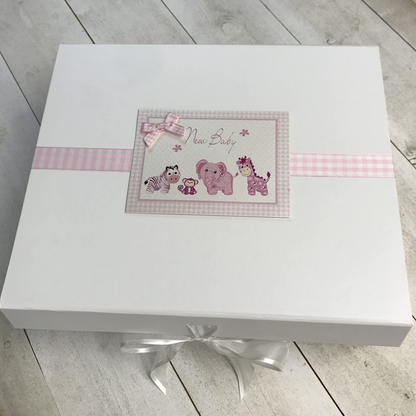 White Cotton Cards New Baby, Large Keepsake Box, Pink Toys