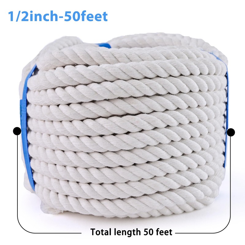 - 【Easy to Cut】】50ft 1/2 inch cotton rope can meet your many needs, it's easy to cut to the length you want, easy to splice,simply wrap the rope with tape before cutting to avoid loosening and unravelling, great for beginners, professionals and DIY enthusiasts