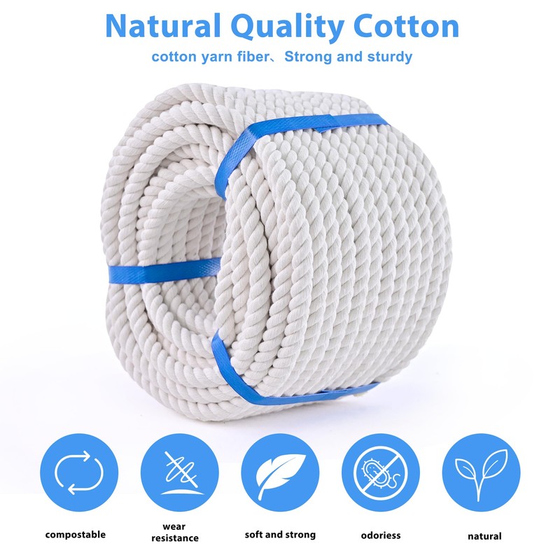 - 【Soft Cotton Rope】Our cotton rope is smooth, soft and odorless, easy to tie and untie without hurting your hands.Perfect for a variety of outdoor activities,such as tug of war rope, swing rope and so on