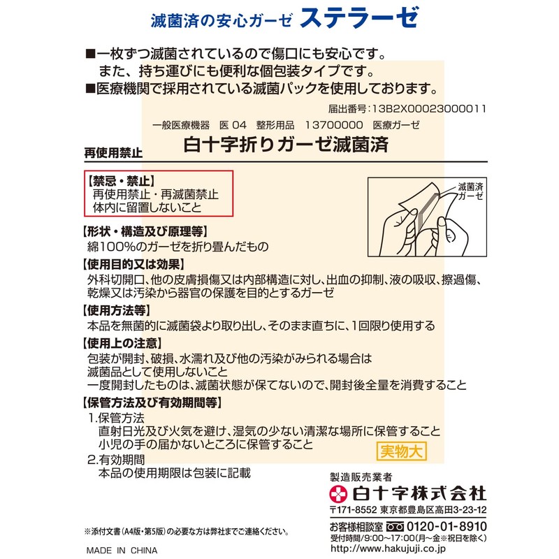 White Cross Sterile Gauze, Stellase, L, 3.0 x 3.9 inches (7.5 x 10 cm), 12 Folds, 1 x 24 Bags, Individually Packaged, General Medical Equipment