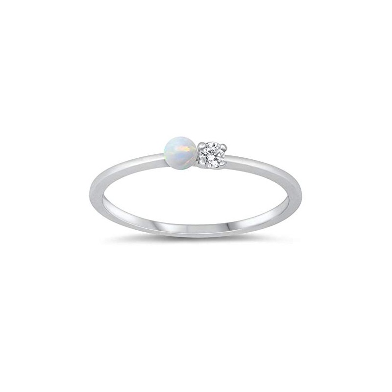 White CZ White Simulated Opal Simple Minimalist Promise Ring New .925 Sterling Silver Band Size 8